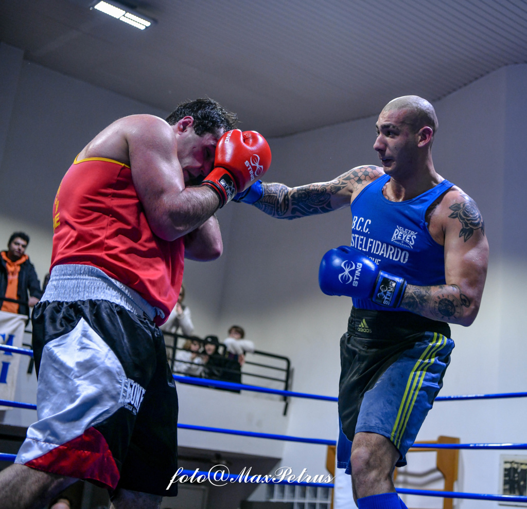 Il primo dei combattimenti più rilevanti è stato quello tra i pesi massimi Luca Montagnoli della Nike Fermo assistito all’angolo dal maestro Fausto Rocco, e Davide Cacchiarelli della Boxing Club Castelfidardo coadiuvato dal maestro Andrea Gabbanelli; il primo dotato di potenza e resistenza ed il secondo di statura più alta, provvisto di maggior tecnica e velocità.