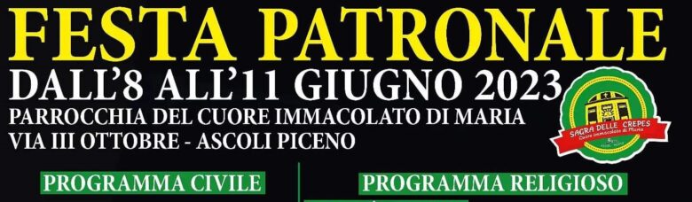 ASCOLI PICENO – Da Giovedì 8 a Domenica 11 Giugno al quartiere Luciani torna la Sagra delle Crepes, nella parrocchia del Cuore Immacolato di Maria ad Ascoli Piceno per la sua 42esima edizione. Un evento che si svolge sin dal 1978, stoppato per tre edizioni per causa covid-19.