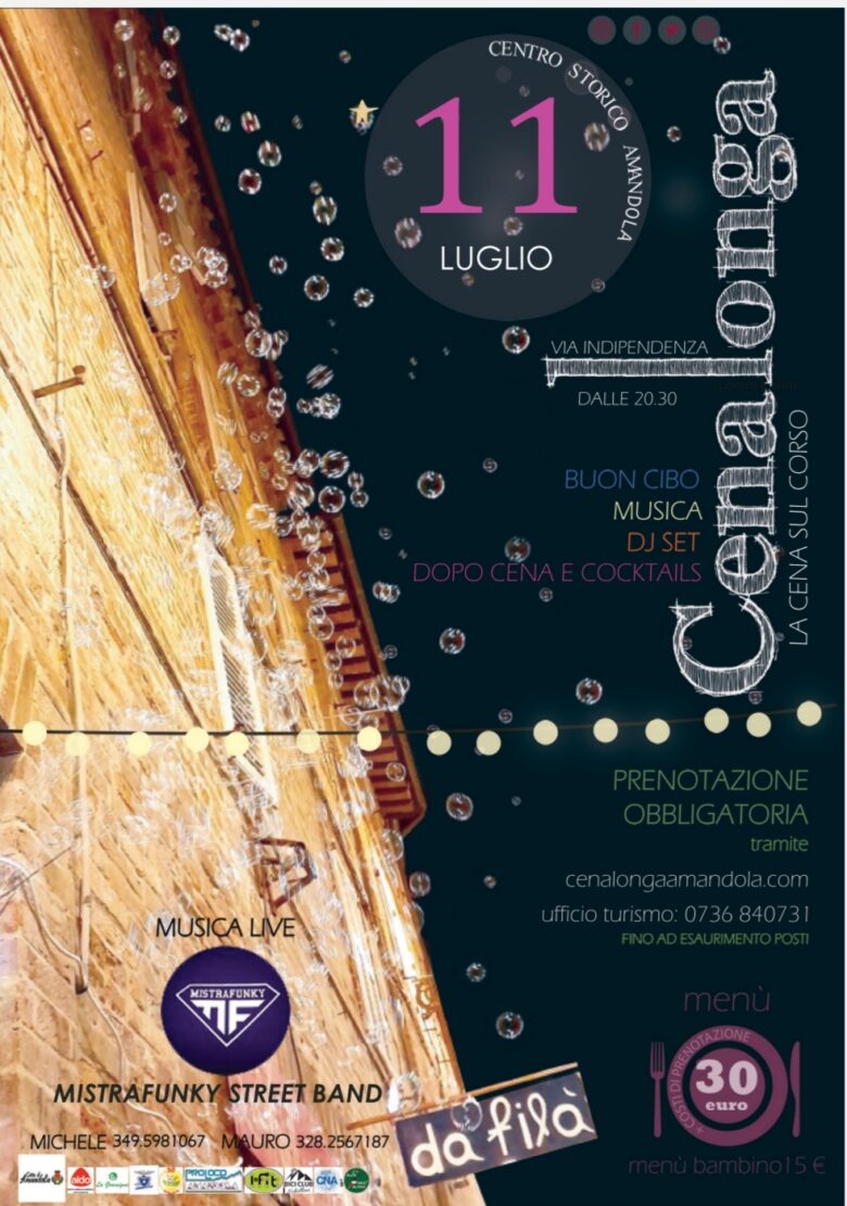 AMANDOLA – Cena evento nel centro storico della città di Amandola. Evento esclusivamente su prenotazione, fino ad esaurimento posti in programma l’11 luglio la Cenalonga.