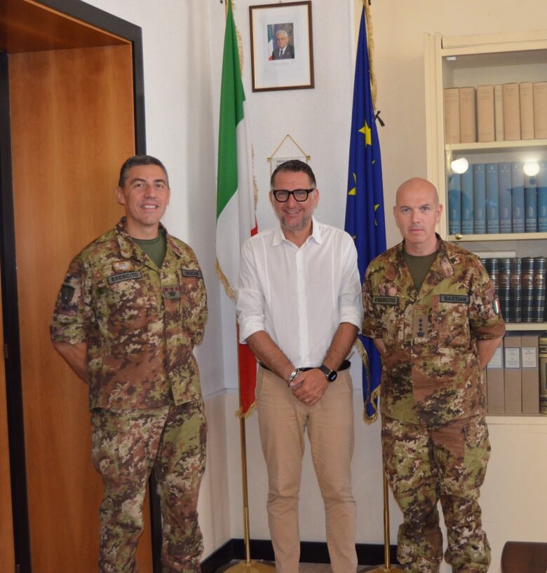 ASCOLI PICENO- Il Presidente della Provincia Sergio Loggi ha incontrato, a Palazzo San Filippo, il nuovo Comandante del 235° Reggimento Piceno, il Colonnello David Bastiani. L’alto ufficiale era accompagnato dal Colonnello uscente Giovanni Cruciani che, dopo aver guidato con competenza e attaccamento verso la comunità picena il 235° Reggimento, è stato destinato ad un nuovo e prestigioso incarico. Il neo Comandante ha sottolineato l’impegno a proseguire il rapporto di cordiale collaborazione che da sempre contraddistingue il legame tra Provincia ed Esercito.