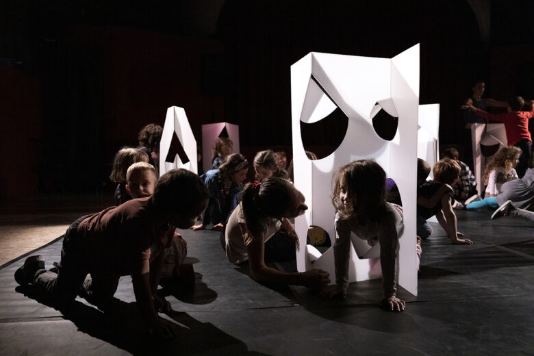 In Habitat kids! due personaggi abitano uno spazio fantastico fatto di forme, luci e colori. Muovendosi in questo luogo onirico evocano immagini, storie e giochi in cui i bambini e le famiglie potranno dare forma alle loro fantasie. Il pubblico è libero di prendere parte alla performance come vuole, decidendo in autonomia se interagire con le danzatrici, con gli oggetti, con la musica, con i propri familiari, o stando semplicemente a guardare le magie che accadono.