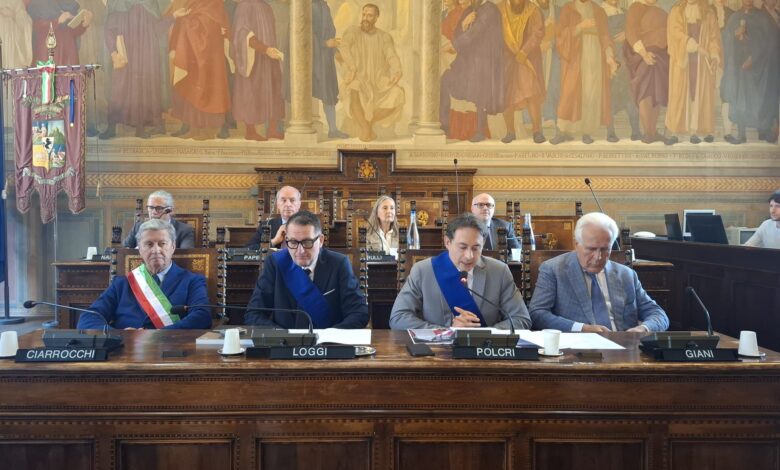 ASCOLI PICENO – Il Presidente della Provincia di Ascoli Piceno, su invito del collega Presidente di Arezzo, ha partecipato nel capoluogo aretino alla cerimonia del centenario della sala dei Grandi affrescata dal pittore marchigiano Adolfo De Carolis. Erano presenti, tra gli altri il presidente della Regione Toscana, il Sindaco di Arezzo, gli eredi De Carolis e il sindaco di Montefiore dell’Aso intervenuto all’evento insieme ad una folta delegazione di cittadini provenienti dalla terra natia dell’insigne artista piceno.