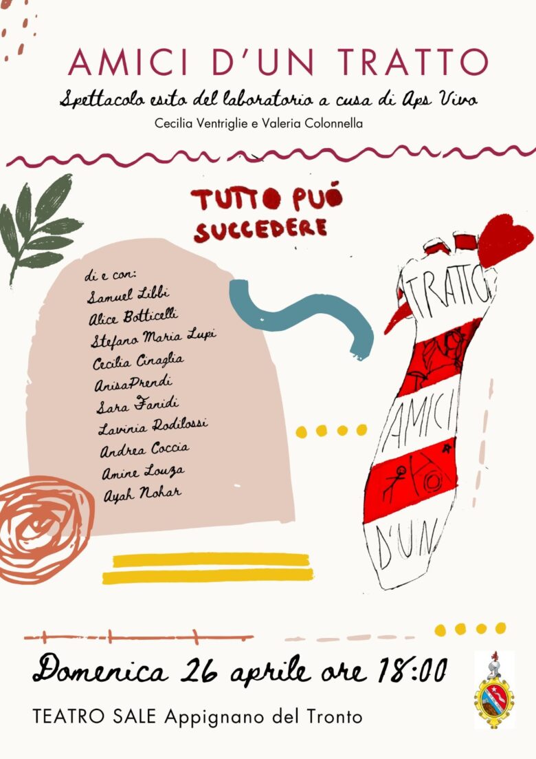 Il Teatro del S.A.L.E. di Appignano del Tronto ospiterà lo spettacolo“Amici d’unTRATTO”, esito finale del laboratorio teatrale dedicato alle ragazze e ai ragazzi del