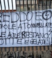 0All'ingresso della struttura è apparso un grande striscione bianco che non lascia spazio a interpretazioni: "FREDDO E REGOLE A TONNELLATE MA LE AULE RESTANO ROTTE E GELATE!!!".