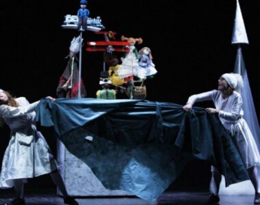 0La storia dello spettacolo di Sandra Novellino e Delia De Marco accade in una bottega di giocattoli e le botteghe di giocattoli non sono forse delle città nelle quali i giocattoli vivono come delle persone?