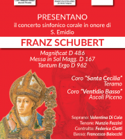 0L’associazione Coro Ventidio Basso ed il comune di Ascoli Piceno, in collaborazione con il Coro Santa Cecilia di Teramo, eseguiranno tre composizioni di Schubert. Appuntamento alle 21.30 nella chiesa di San Francesco